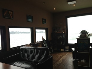 わかりにくいですが、おっきな窓の外は、一面の海です