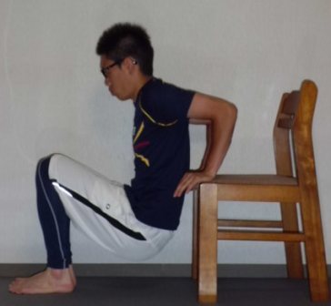 ・背中を反らないように注意し、膝は真っ直ぐ伸ばしたままで行なう