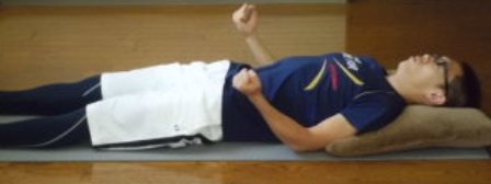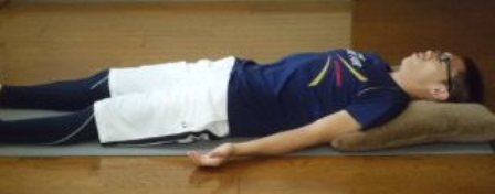 ・仰向けに寝て、手足を少し開き、楽な姿勢をとる