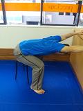 - 痛みを誘発しないように、前の膝の曲げ方や、首の傾け方は角度に注意します。