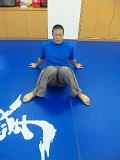 まず正座で座り、それから右足を床に直角になるように立てます。