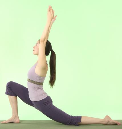 息を吸いながら、上体を床に垂直になるように起こして、両手を外側から頭の上で合わせ、天井に向けて思い切り伸ばします。腰はなるべく下に下げ胸を張りましょう。このポーズで、約30秒ほど自然呼吸をしながらキープします。