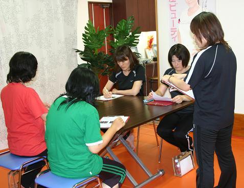 セミナー後も皆さん残って番外編でチークの塗り方、化粧品の選び方など行いました。