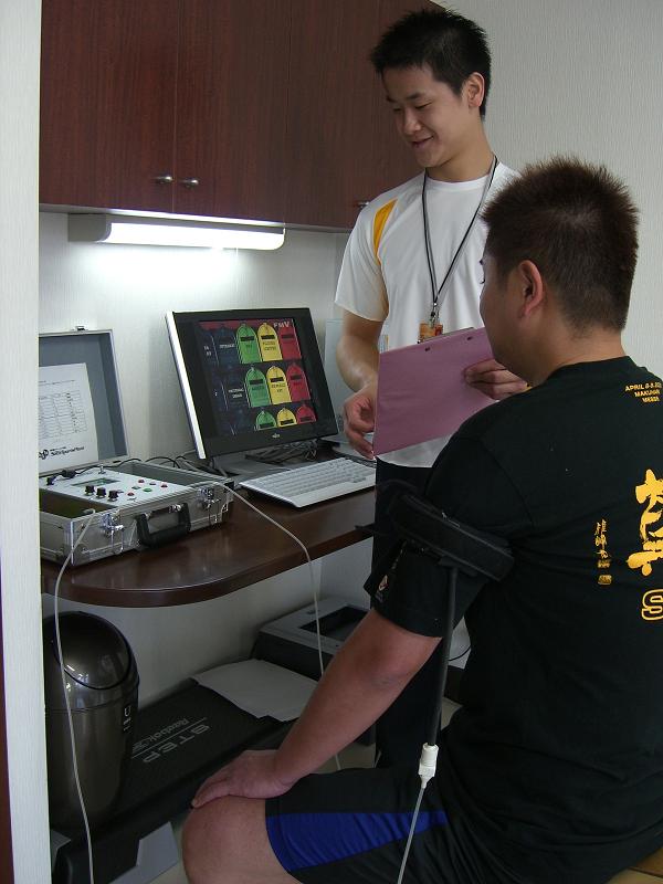 加圧トレーニングのデモンストレーションと、インボディー(身体の細部を測定する最新機械)の体験測定など